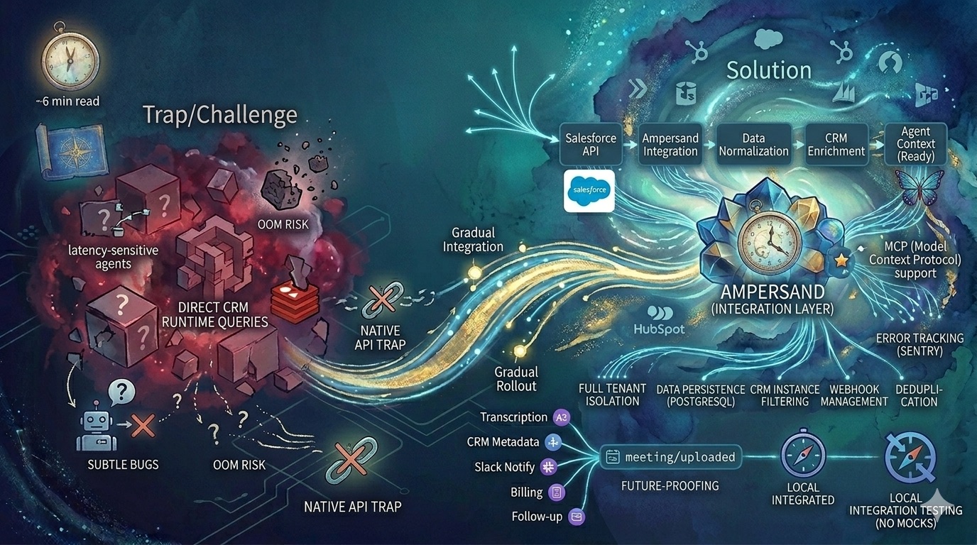 MCP is elegant for point lookups, but the questions that matter in sales span more data than any context window can hold. Here's why we chose continuous data pull over runtime queries, and why Ampersand powers our integration layer.